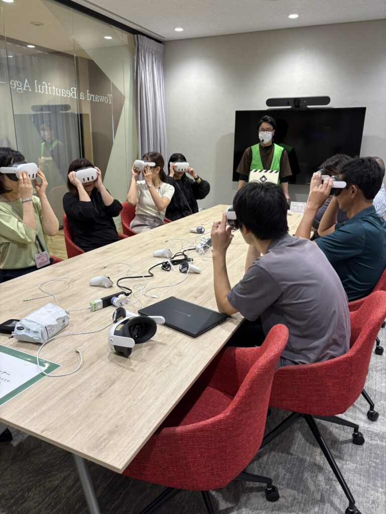 令和7年9月19日(金)、東京都渋谷区にある東急株式会社様の本社内にてAR煙・消火体験、VR地震体験を用いた社員向けの防災訓練及び体験会をおこないました。