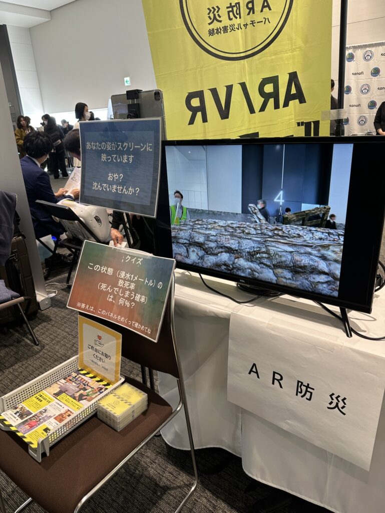 ブースには、AR消火・煙体験、AR浸水体験、VR地震体験の4種類全ての体験を用意しました。