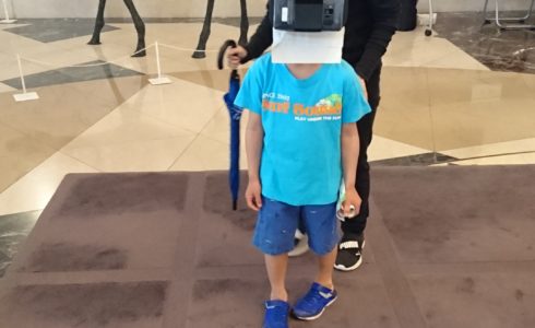 こちらの方々はVR地震体験をおこなっています。もし、このメンバーで大地震が来た時、どうやって避難をおこなうのか!?どうやって自分の身を守るのか!?