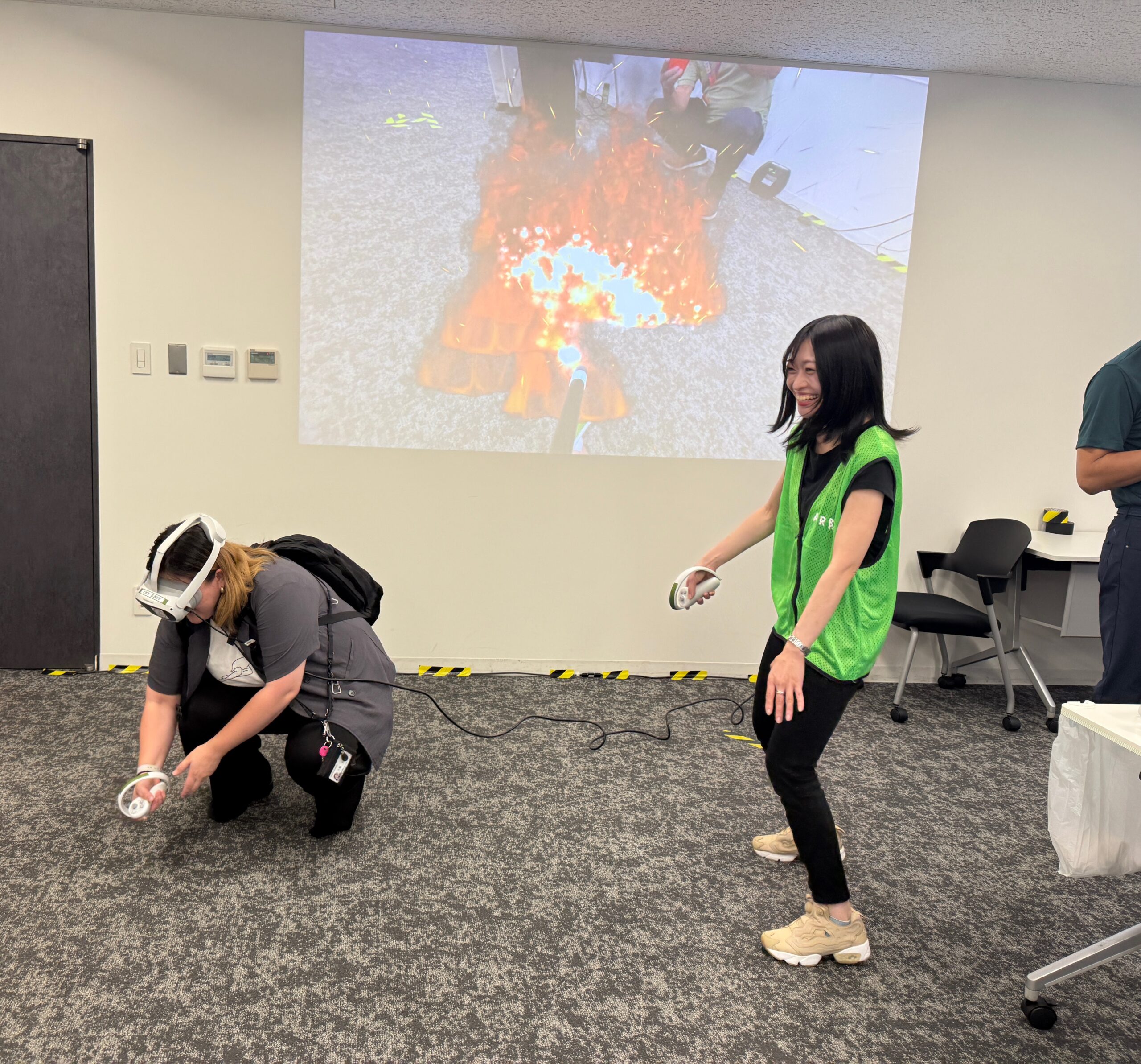 令和7年9月19日(金)、東京都渋谷区にある東急株式会社様の本社内にてAR煙・消火体験、VR地震体験を用いた社員向けの防災訓練及び体験会をおこないました。